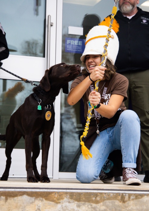 The Marching 97's drum major is responsible for running field practice and leading the band in performances. The drum major writes the first field show each season and organizes drill writing for the rest of the performances. Look for the drum major in a tall white hat as they lead the band in the traditional 'Marching LEHIGH'! Contact the drum major at DrumMajor@marching97.org.